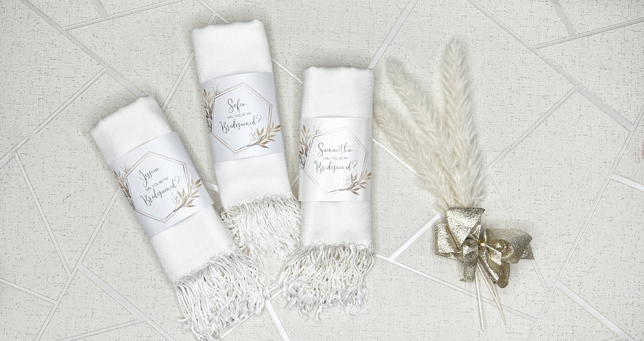 Keep your guests warm and stylish with our super soft pashminas. A perfect keepsake gift and accessory for any occassion!