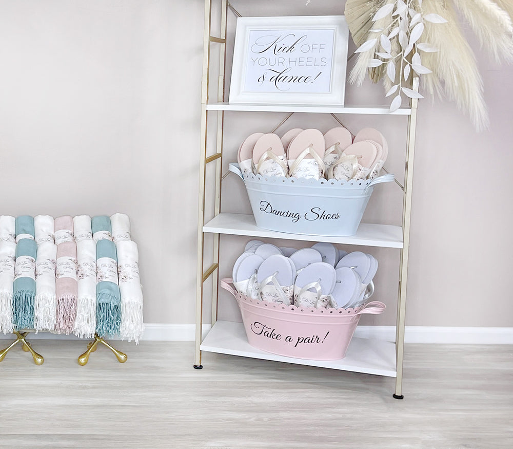 Keep your guests comfortable and dancing all night long! Mix and match wedding guest flip flop colors to match any theme.