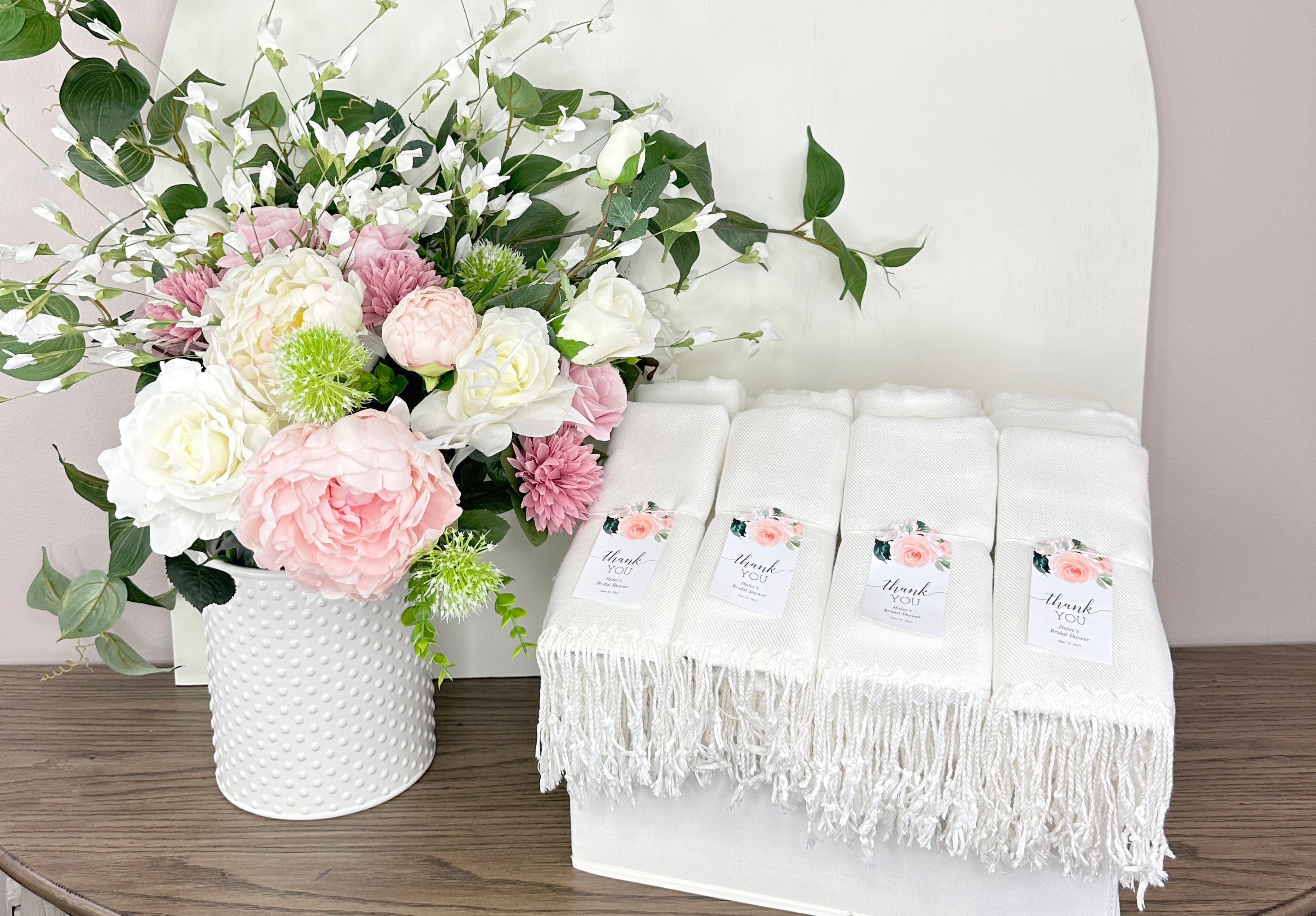 Our bulk pashminas are the perfect favor for your guests. They are high quality and will keep your guests warm and cozy. Select from a variety of curated colors.